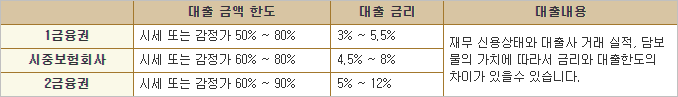 - 부동산 담보 가치 및 개인신용점수에 따라 차이