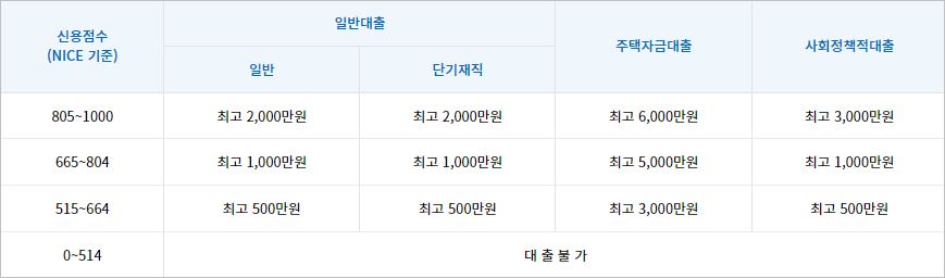 - 최소 대출금액 : 최소 100만원 이상 (10만원 단위로 신청 가능)