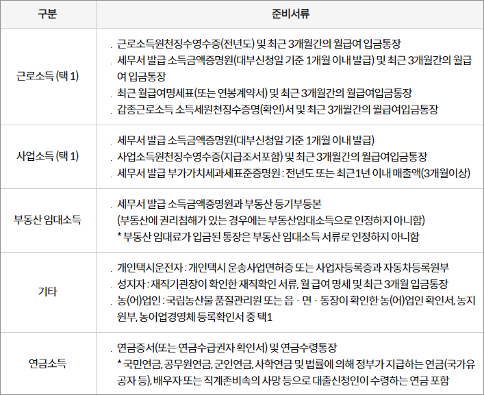 ※ 소득증빙 준비서류