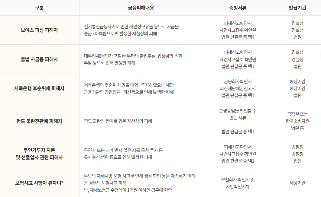새희망힐링론 신청을 위해서는 반드시 금융피해입증 서류를 제출해야 합니다. 본인 피해에 맞는 서류를 하단에서 확인 후 다운 받으시기 바랍니다.