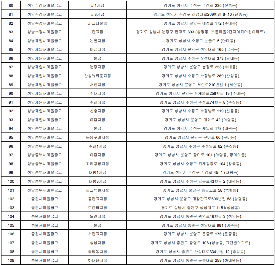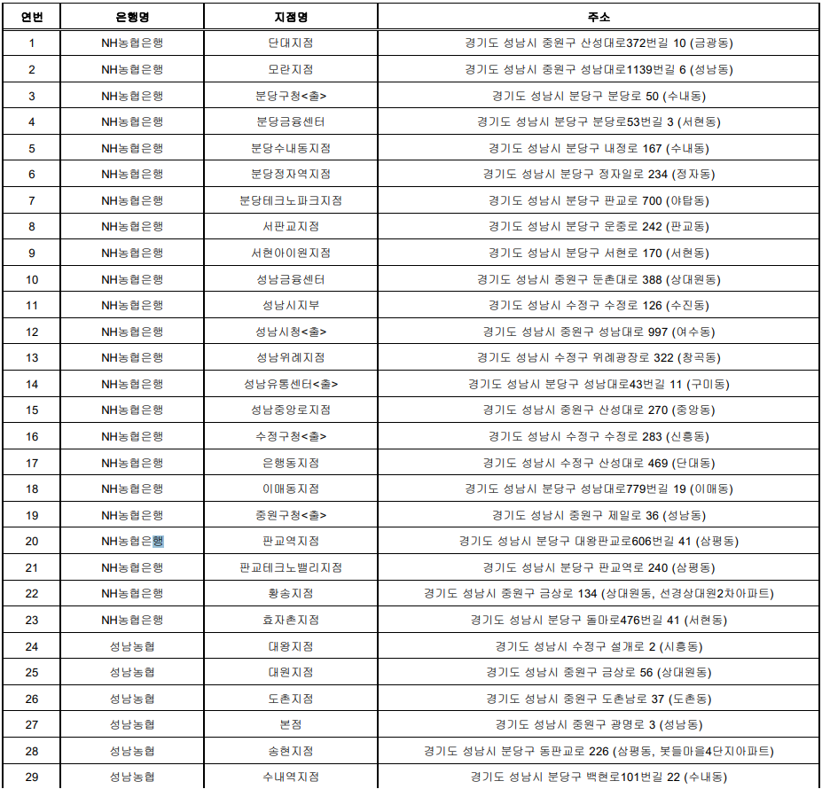 카테고리 없음 성남사랑상품권 지류 구매처 완벽정리 by leverlever 2025. 2. 5. 성남사랑상품권 지류 구매처는 다음과 같습니다. *표 클릭시 확대 가능 구매처 구입은 만 18세 이상만 가능합니다. 현금으로만 구입할 수 있습니다. 반응형 공유하기 게시글 관리 레버인사이트리치 저작자표시 비영리 변경금지 (새창열림) 댓글