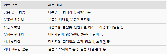 📌 대표적인 불가업종