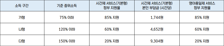 - 종합형: 기본형 서비스 + 가사 활동 일부 포함