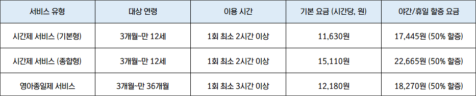 2025년 아이돌봄서비스 시간 및 비용, 할증, 자기부담금에 대해 말씀드리겠습니다. 서비스 이용 전 반드시 확인하시기 바랍니다.