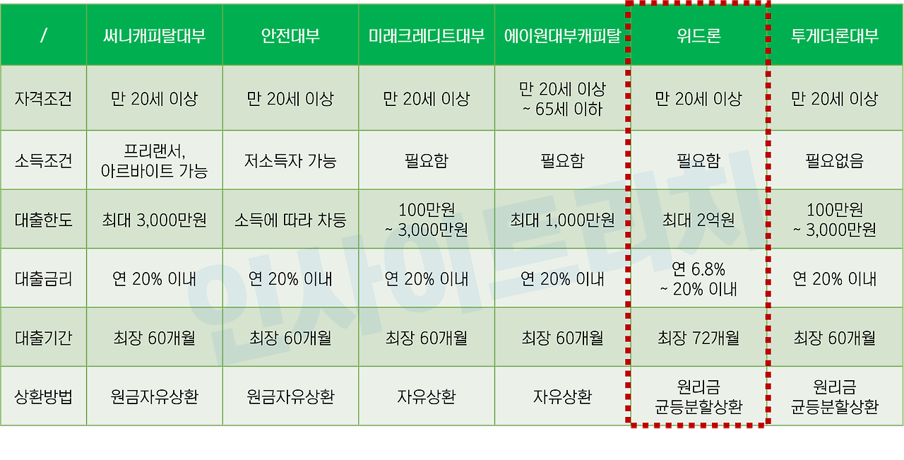세부 비교해 드리니 대부를 고려한다면 꼭 읽어보시기 바랍니다.