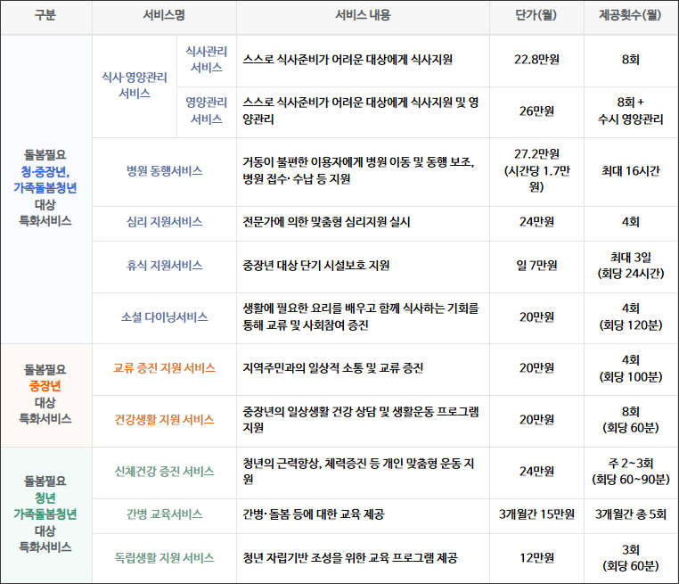 ※ 업무시간 외 야간, 휴일 서비스의 경우 지자체별 기준을 마련해 지원받을 수 있으며, 이는 이용자가 부담