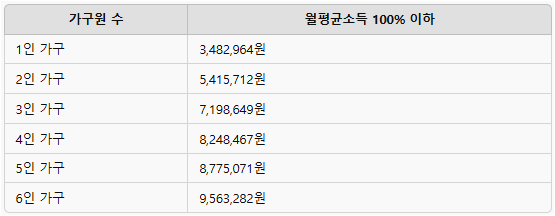 2024년 도시근로자 가구당 월평균소득 100% 이하
