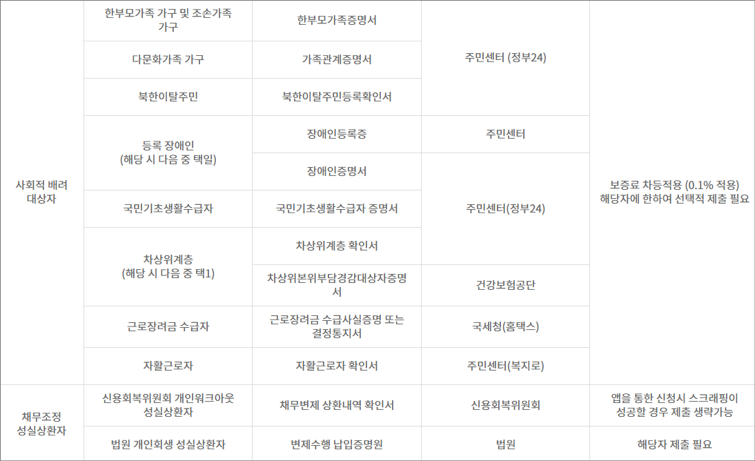 1) 의료수급자(의료보호대상자) 등 건강보험 미가입 대상 등은 수급자증명서(국가유공자확인서) 등 제출