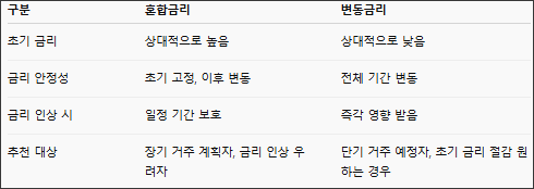 - 신용점수가 낮고 금리에 민감한 경우, 혼합금리가 심리적으로 안정적