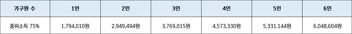 긴급복지 주거지원 대상자는 중위소득 75% 이하의 가구에 해당해야 합니다. *클릭 시, 확대 가능