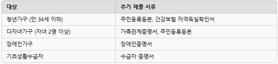 4) 추가 제출 서류 (사회배려계층 대상 혜택)